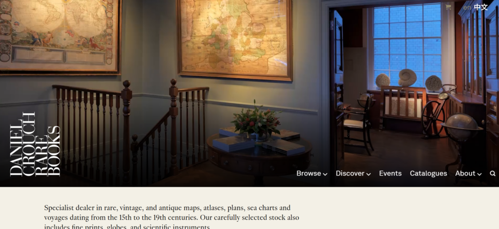 Daniel Crouch Rare Books was established in June 2008. For over 17 years, the store has dealt in rare maps, atlases, plans, sea charts, and antiquarian books.