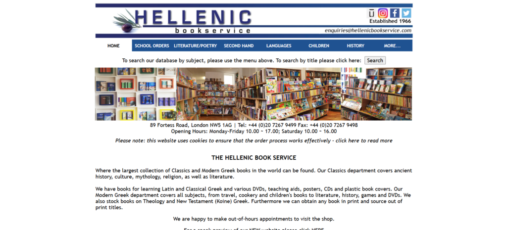 Hellenic Bookservice’s Modern Greek department covers all subjects, from travel, cookery, and children’s books. However, you may want to look elsewhere if you’re looking for a more conventional bookstore.