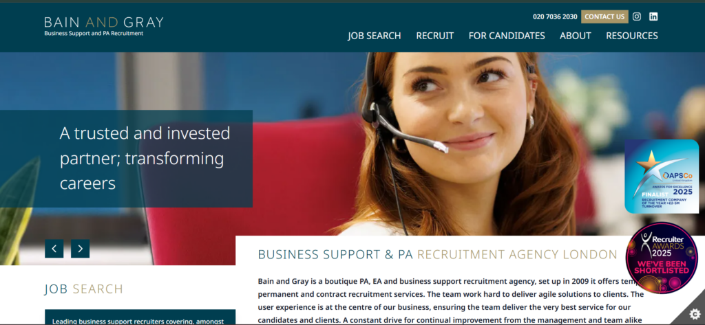 Bain and Gray is a boutique PA, EA, and business support recruitment agency that started in 2009.