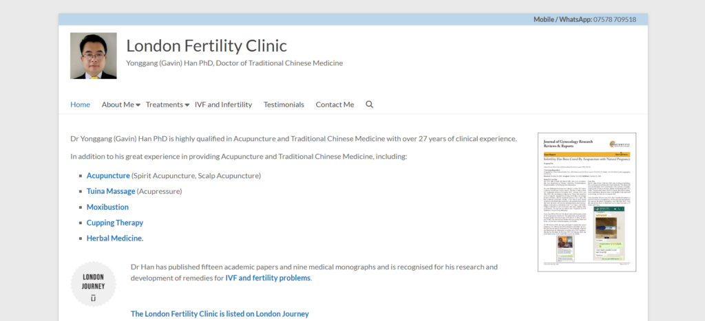 Moreover, Dr Han has published fifteen academic papers and nine medical monographs and is recognised for his research and development of remedies for IVF and fertility problems.